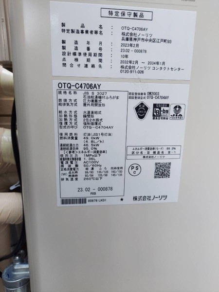木曽岬町 ノーリツ石油給湯機付ふろがまOTQ-4706AY 給湯器交換工事
