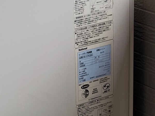 いなべ市 NATIONAL HE-37K2QK→三菱電機家庭用自然冷媒CO2ヒートポンプ給湯機貯湯ユニットSRT-STK375D