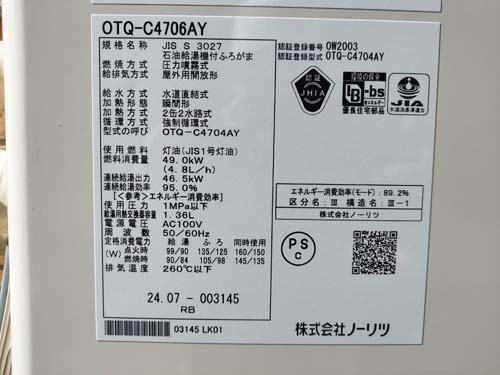 北中城村 ノーリツ石油給湯機付ふろがまOTQ-4706AY 給湯器交換工事|広島給湯.com